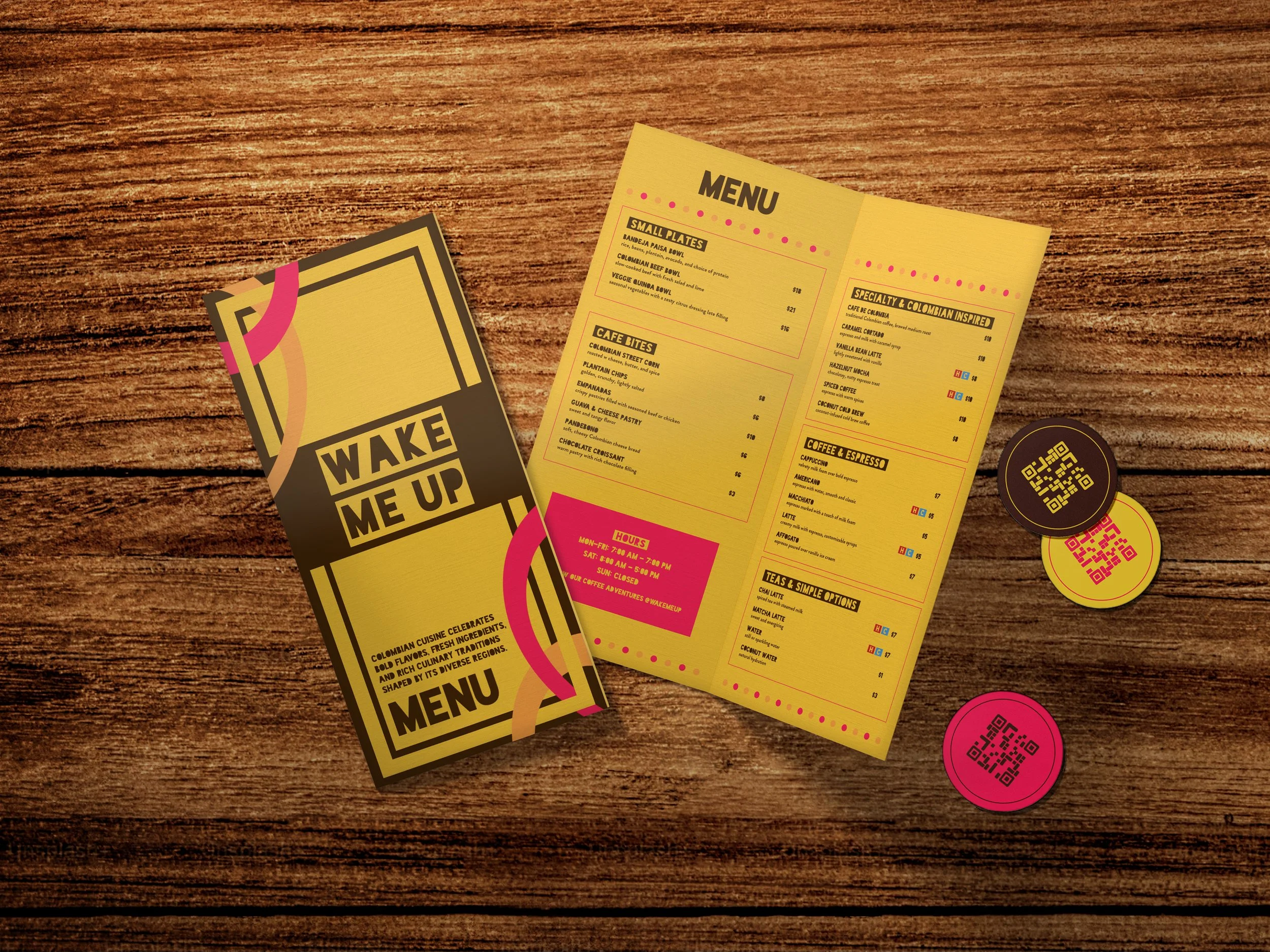 Wake Me Up is a Colombian ground coffee brand that captures the bold, energizing spirit of a fresh brew. With a vibrant color palette and playful typography, the branding reflects the coffee’s rich flavor and lively character.