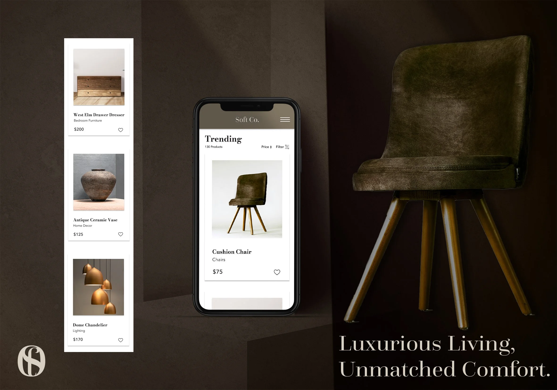 Soft Co. is a furniture company dedicated to luxury without compromising comfort. The branding reflects this vision through a clean, minimal design paired with a rich, sophisticated color palette that highlights elegance and timelessness.
